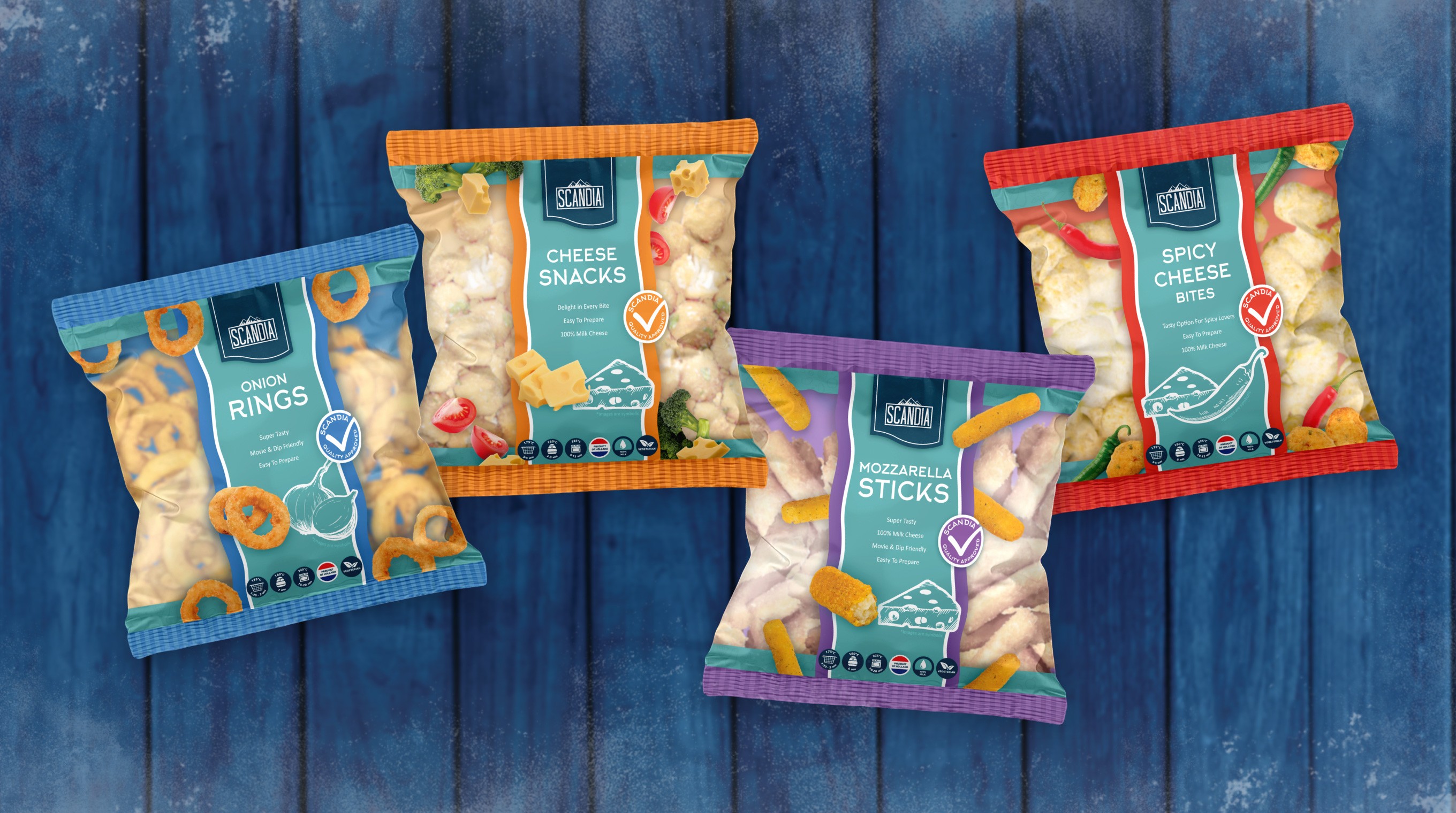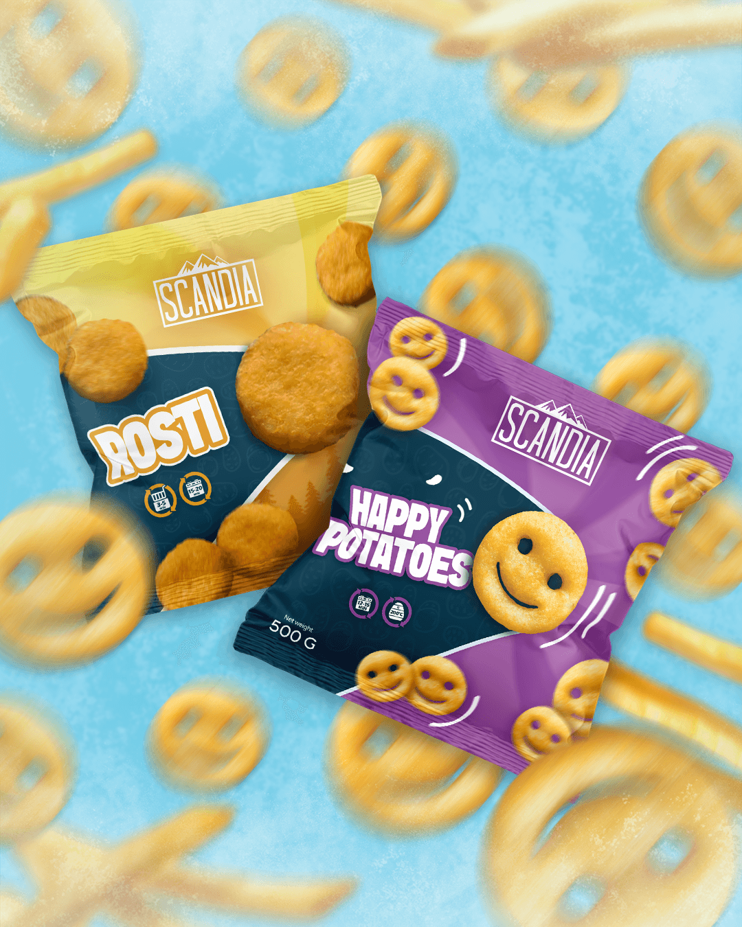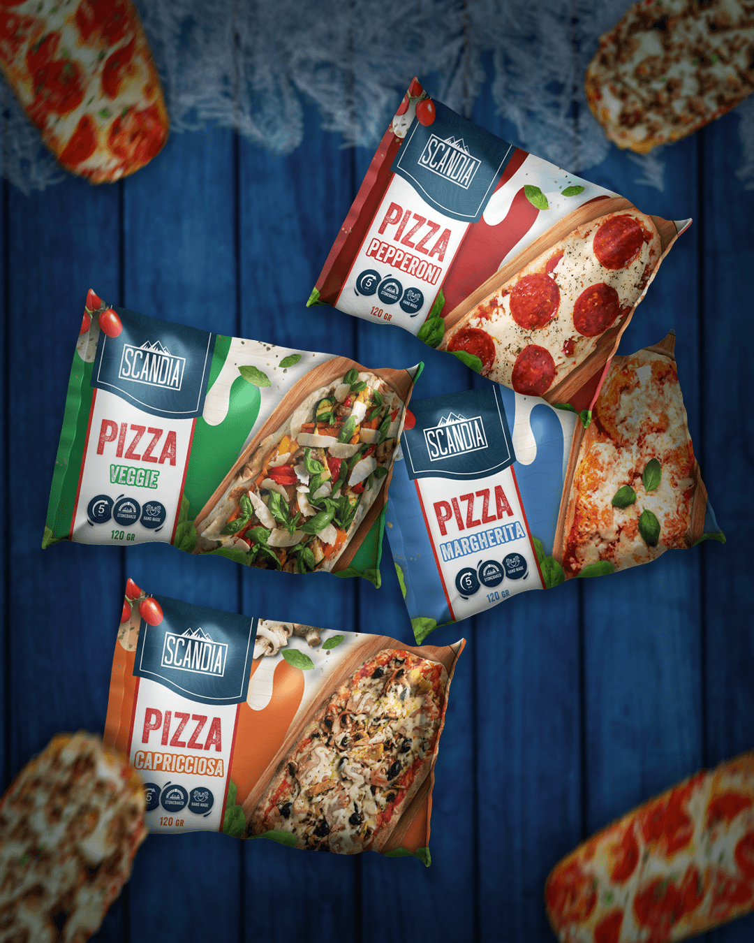 Since Scandia covers a wide range of frozen products: pizzas, potatoes, appetizers, breaded items, and convenience meals, we had to ensure all packaging felt connected while maintaining distinct category recognition. We developed a consistent design language that tied everything together while allowing flexibility for future product expansion.
